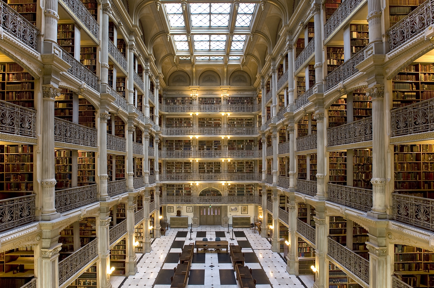 Your friendly law library interns have started a bucket list to visit the most beautiful libraries in the United States. Our first stop was the George Peabody Library, founded in 1857 and located in Baltimore, Maryland. The George Peabody Library (formerly known as the Library of the Peabody Institute of the City of Baltimore) was originally a free public library and part of the Peabody Institute, which is now a division of The Johns Hopkins University.