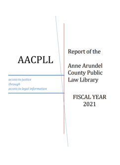 The Anne Arundel County Public Law Library has published its FY2021 Annual Report. The report provides a picture of library use, programs, resources, services, staff and finances. The strategic plan with goals and actions taken is included.