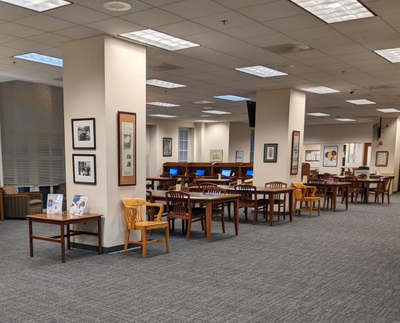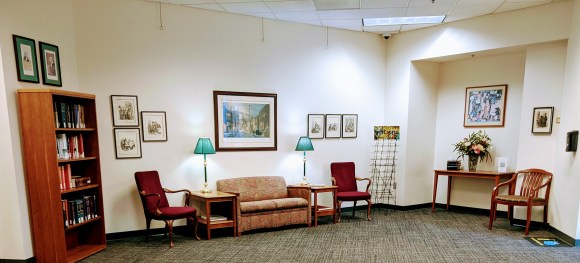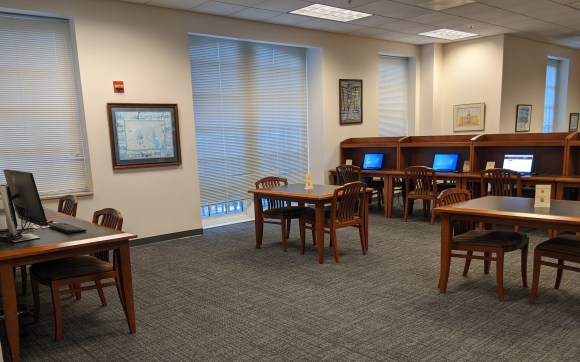 The law library moved to the AABA Lawyers’ Lounge in September 2020. (The law library space was needed for the social distancing of jurors.) This was a much smaller space with only four workspaces and computers. It was also difficult to find. Still, with COVID limiting access to the courthouse and then having such a small space, the law library could offer access to the same services as before: