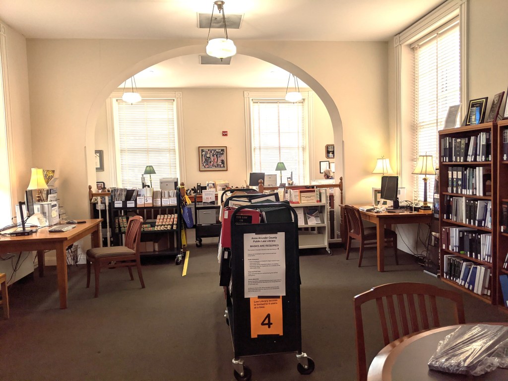 The law library now provides a variety of workspaces, 13 computers with access to legal research databases and Microsoft office, a Maryland print collection and a small conference room equipped with videoconferencing capability. It is a great space to visit for legal research, client consults, document preparation and copies. But if you are not in the courthouse, just call (410-222-1387) or email (AALawLibrarian@mdcourts.gov) and take advantage of library services wherever you are.