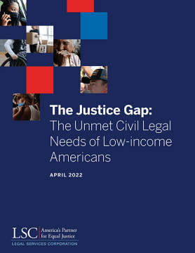 The Legal Services Corporation has released its report, The Justice Gap: The Unmet Civil Legal Needs of Low-income Americans. “LSC defines the justice gap as the difference between the civil legal needs of low-income Americans and the resources available to meet those needs.”